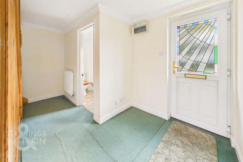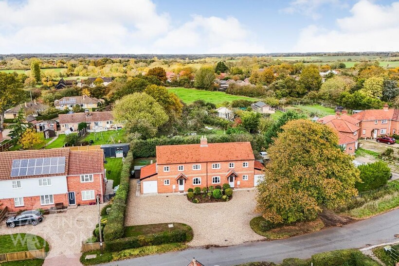 Set back from the road and offering a large sweeping shingle driveway, ample parking and turning space is found with access leading to the main property and adjoining garage - with a lawn frontage and feature planting. The driveway is open plan and shared with the adjacent property. The village has lovely family friendly pub / restaurant 8 mins walking distance away, and is also served by a bus route to the Cathedral City of Norwich. The village also offers excellent transport links with a regular bus service to Norwich and Diss.THE GRAND TOUR