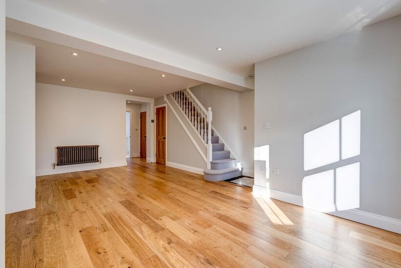 The accommodation comprises: Entrance hall with a mosaic tiled floor, open plan double size reception with wood flooring and under stairs storage cupboard. Modern kitchen/dining room with a tiled floor, shaker style kitchen units, stone worktops, a "Belfast" sink and a range cooker. Heritage Industrial french doors lead out to the patio and rear garden. Built in Bosch appliances include: washing machine, fridge, freezer and dishwasher. Utility room and downstairs cloakroom.