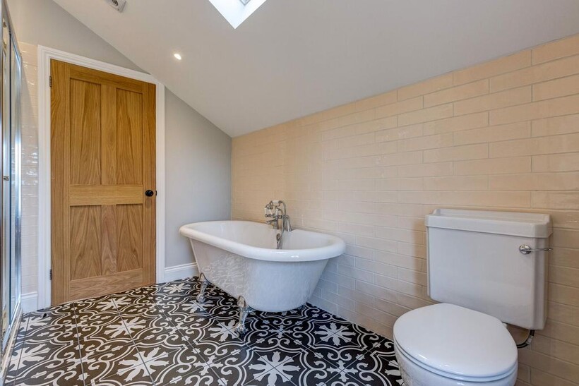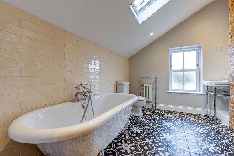 New bathroom suite including a roll top bath & additional shower cubicle. The kitchen/diner come family room is the heart of the property overlooking the generous rear garden via the Heritage industrial french doors giving the property a sophisticated finish in keeping with the rustic charm. The kitchen is equipped with a range of Bosch integrated appliances, including cooker, washing machine, fridge, freezer and dishwasher. The rear garden would be prime for al fresco dining with a lovely patio and feature Well is all part of the wonderful history when entertaining friends & family.