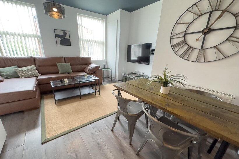 - Spacious living area with TV and dining table