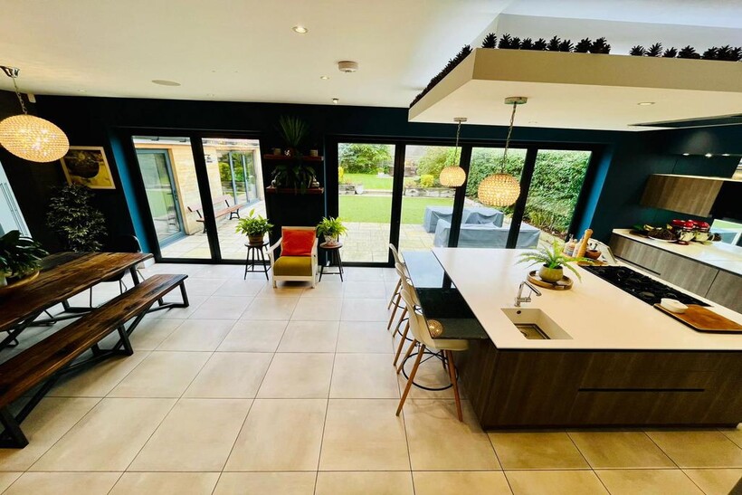 Expansive open-plan kitchen, dining and living space with direct garden access