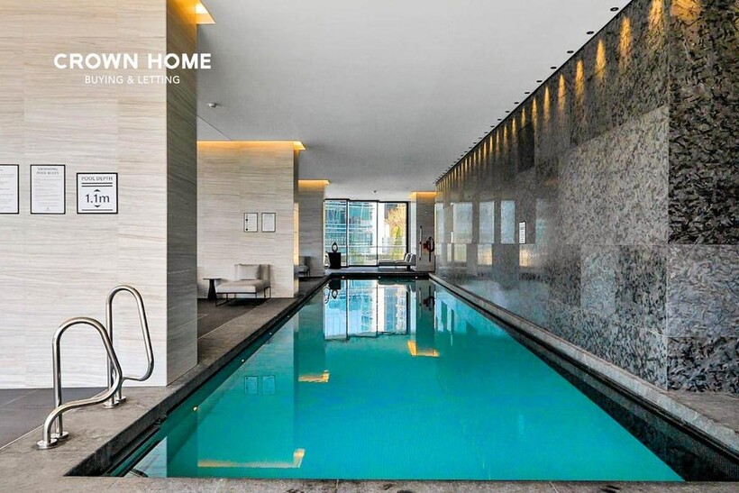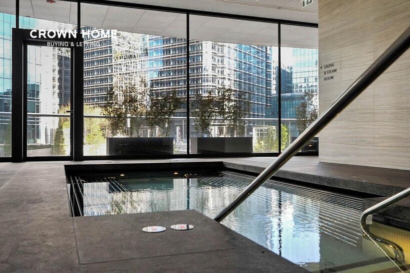 Residents of One Park Drive enjoy world-class amenities including a swimming pool, vitality pool, gym, sauna, steam room, private cinema, lounge, library and a 24-hour concierge service.