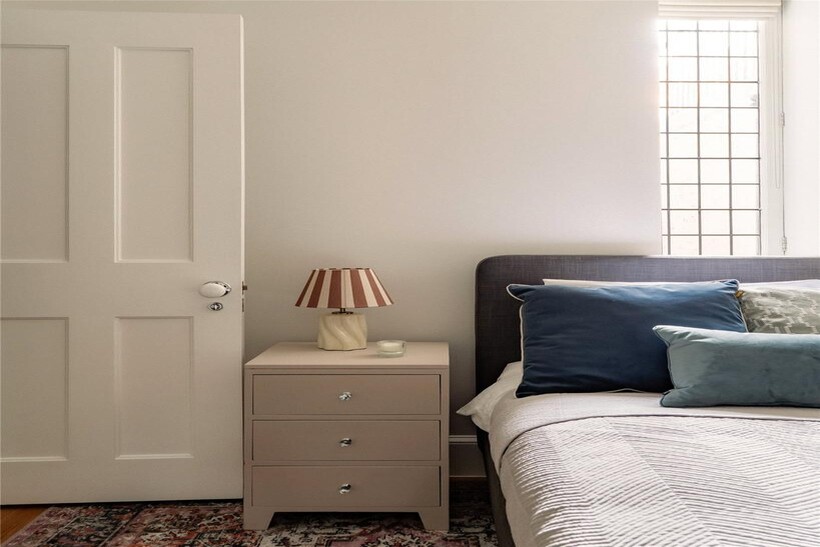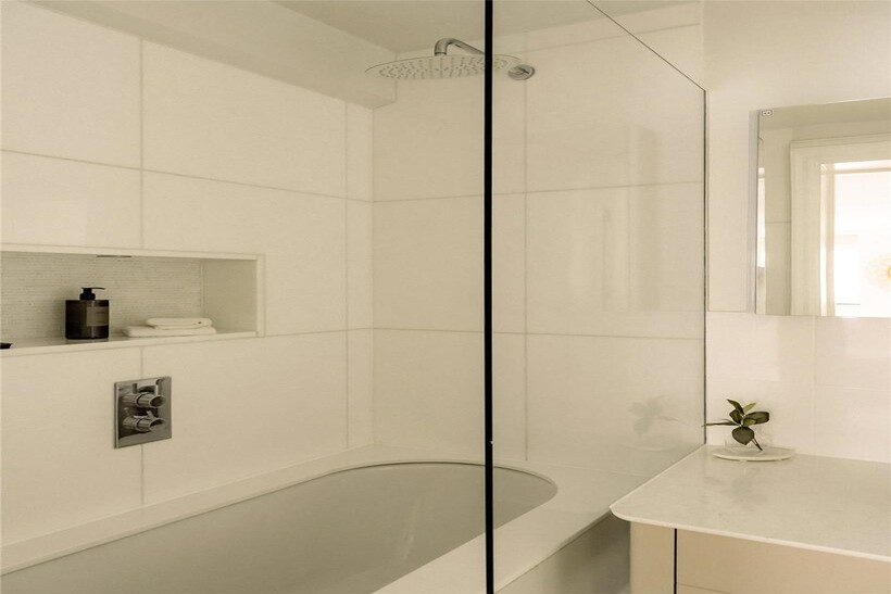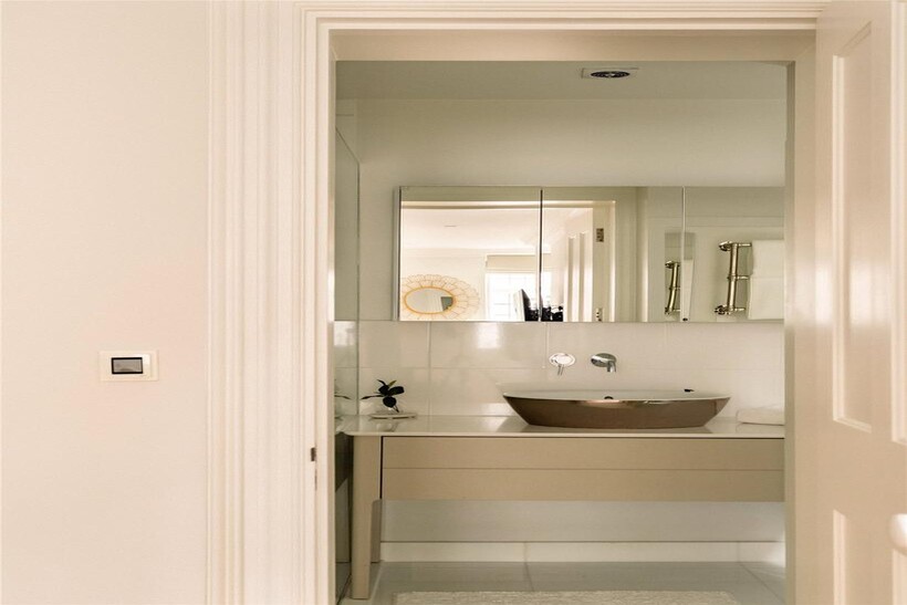 The principal bedroom is exceptionally generous with an ensuite bathroom, while the second bedroom offers comfortable proportions with its own ensuite bathroom. Wooden floors feature throughout.