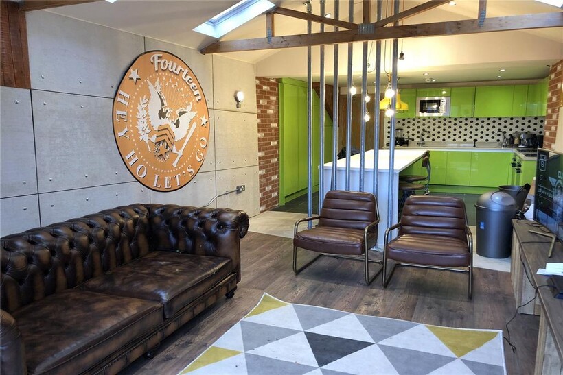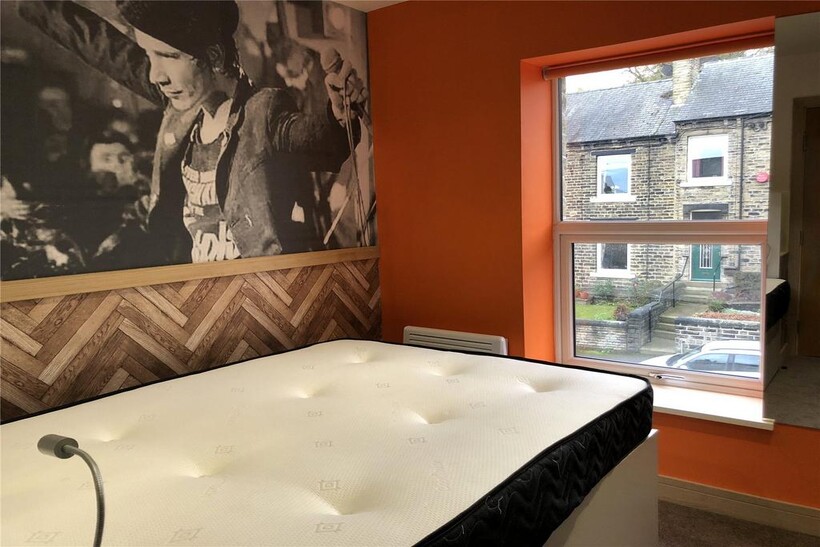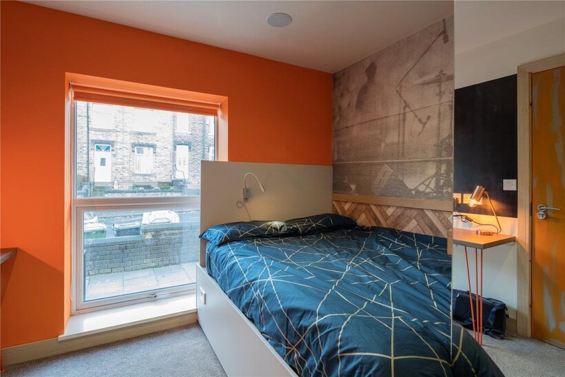 14 Orchard Terrace – a spectacular 6 bedroom property located in the most popular student area of Huddersfield, lower Newsome! Renovated into a fabulously bright and colourful social space, perfect for Students looking for a modern property close to the University. During the renovation, every inch of the property was renewed to maximise and utilise the space to its best potential. In the sociable living space, you’ll find the perfect balance of industrial urban style and a vibrant retro colour scheme….and of course, we made sure to provide enough appliances, storage and preparation space in the kitchen for everyone, with TWO ovens, TWO sinks…and an Island with a Breakfast Bar! The enormous living space opens out onto an external paved terrace…with a FIRE PIT INCLUDED! Across the 6 bedroom property, there are FOUR ENSUITE bedrooms, 2 additional rooms sharing an epic bathroom (with a bath!), plus there is even a guest WC on the ground floor! Each bedroom is fully furnished with every essential you could wish for! The house truly is THE BEST student property on the market…with Bills Included, FREE Superfast Virgin Media Internet, leather sofa, a 50” TV in the lounge, ceiling speakers in every bedroom, stylish décor throughout, a fire pit on the terrace AND a Stag in an astronauts outfit on the wall….what more could you ask for?! Enquire now, don’t miss out!
