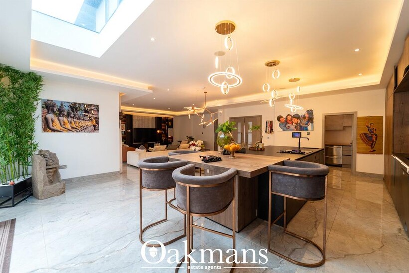 Oakmans are delighted to present this truly exceptional seven-bedroom detached residence, perfectly situated in a highly sought-after area of Solihull. Finished to an impeccable standard throughout by the current owners, this stunning home offers luxurious living spaces and meticulous attention to detail.The property briefly comprises: an impressive entrance hallway, three elegant reception rooms, and a stunning open-plan living area to the rear, complete with bi-folding doors that open onto a beautifully landscaped garden. The ground floor also benefits from a utility room and a stylish downstairs bathroom.