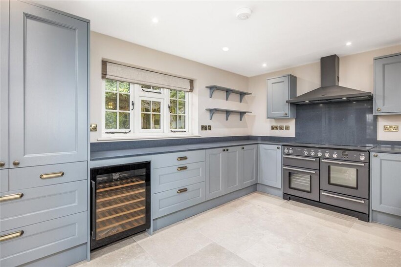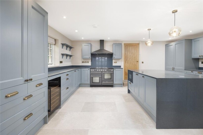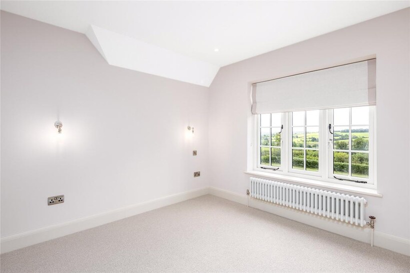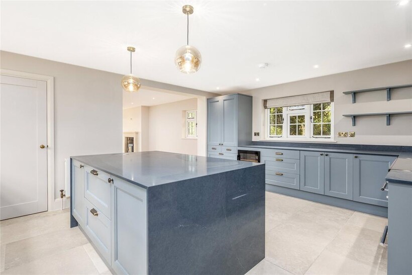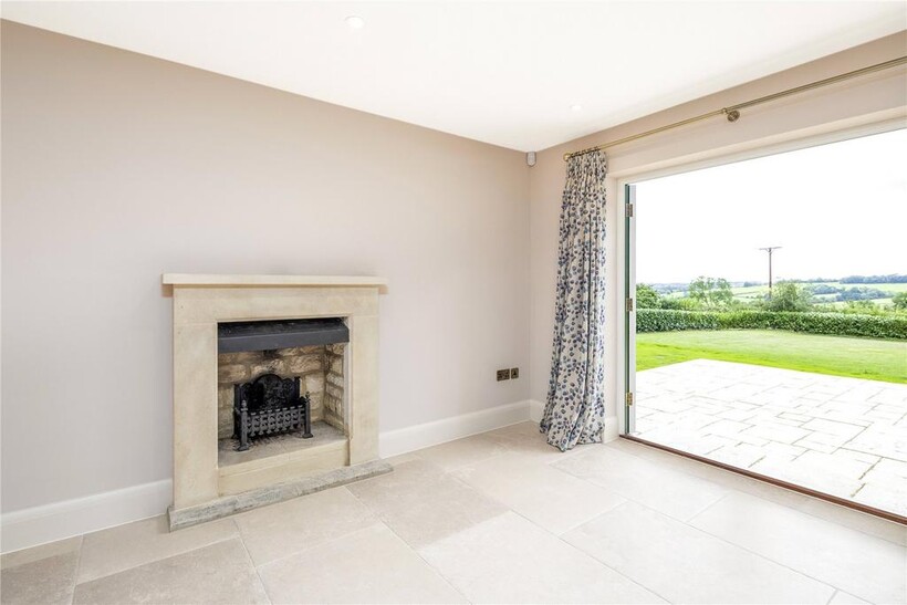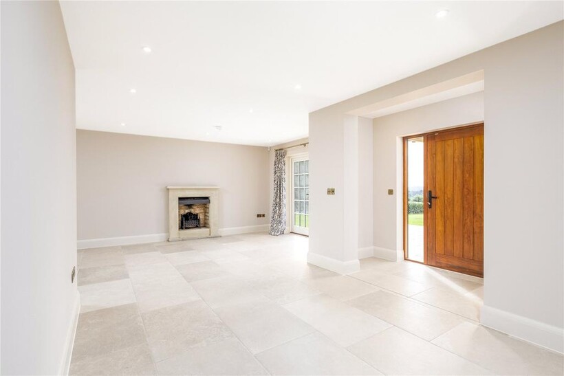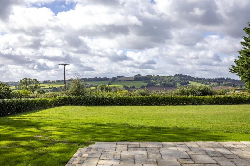 The heart of the home is the well-appointed kitchen, offering an extensive range of fitted cabinetry, integrated appliances and a central island ideal for both everyday family life and entertaining. The kitchen flows seamlessly into two open-plan reception rooms, creating a wonderfully sociable space with doors opening directly onto the garden terrace, framing the beautiful rural views beyond.
