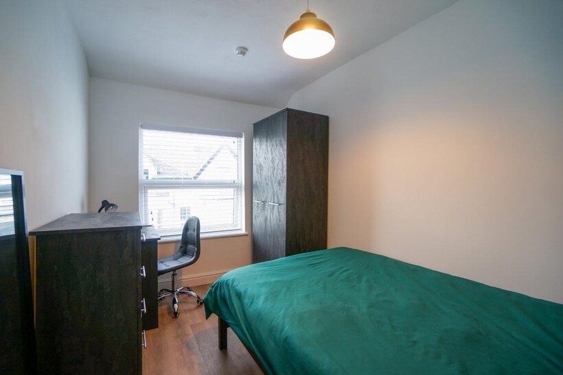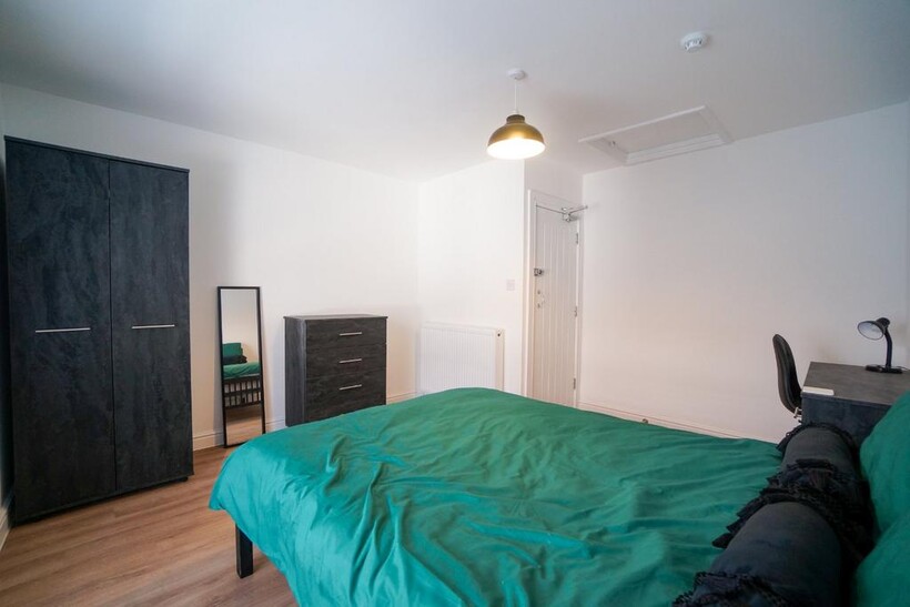 Each of the seven bedrooms is thoughtfully furnished with a double bed, desk, wardrobe, and side units, offering plenty of space for study and storage. The property features one bathroom, one shower room, and a separate WC, making it easy to share facilities.