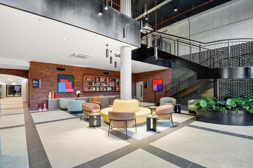 Residents benefit from a comprehensive range of on-site amenities designed to support both relaxation and productivity. These include a welcoming lobby, a heated swimming pool, spa, gym, yoga studio, private cinema, golf simulator, café, co-working spaces, games room, changing room, and post room, all contributing to a vibrant and well-balanced lifestyle.