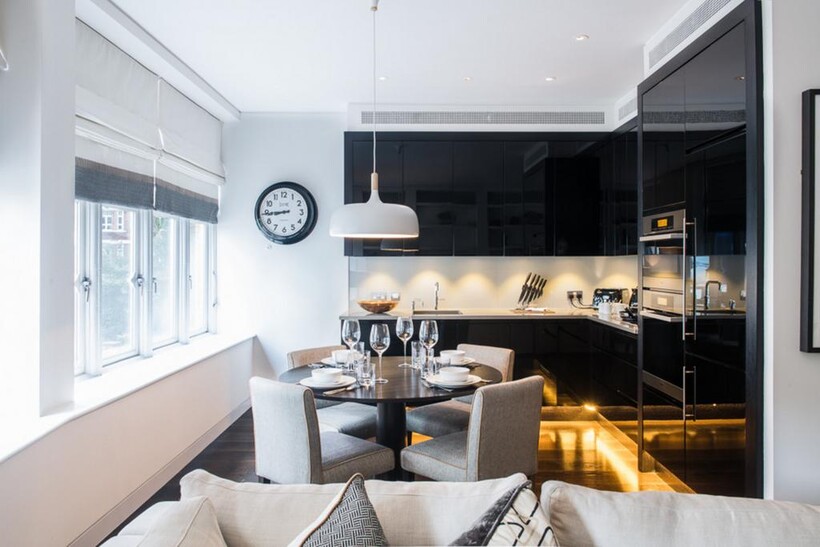 This first-floor apartment is in a Grade II-listed Victorian red-brick building and benefits from a private entrance on Binney Street.Unfolding over 1,033 square feet, the newly updated apartment includes an open-plan kitchen and living room, which is flooded with natural light thanks to five windows. There is also a guest bathroom, a master bedroom with a dressing area and ensuite bathroom, and a second bedroom with access to a private terrace.