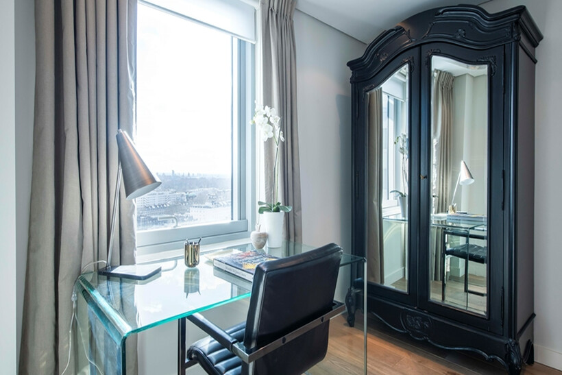 This fourteenth-floor apartment has spacious living and entertaining space with a beautiful reception room and a large balcony, offering breath-taking views over London. It also comprises of a striking modern open plan kitchen with a breakfast bar, four spacious bedrooms, three luxurious bathrooms,