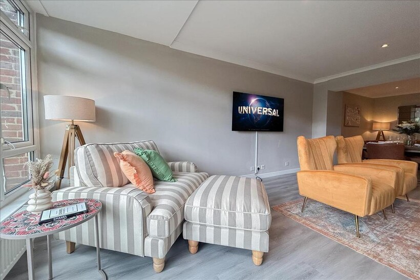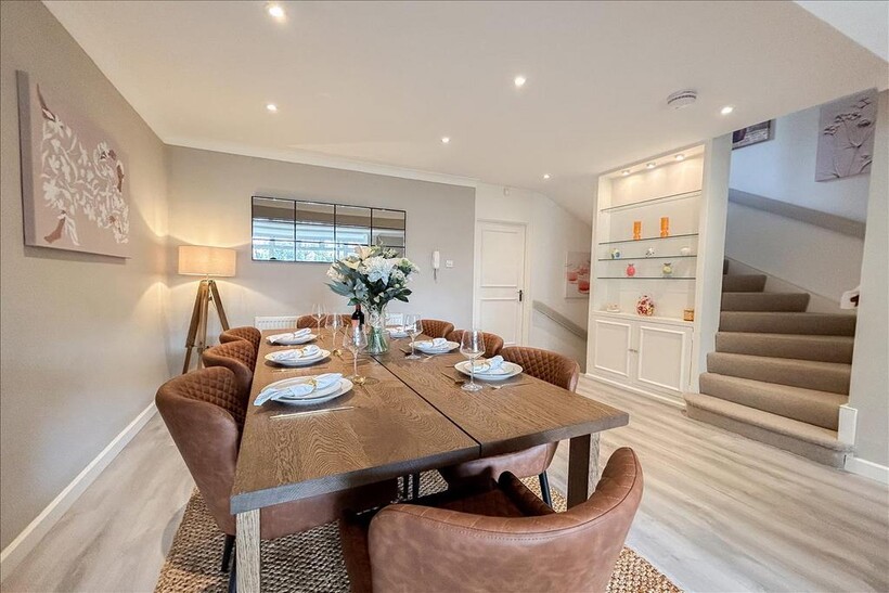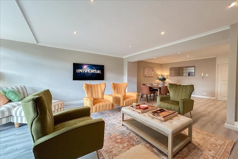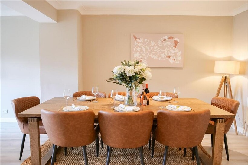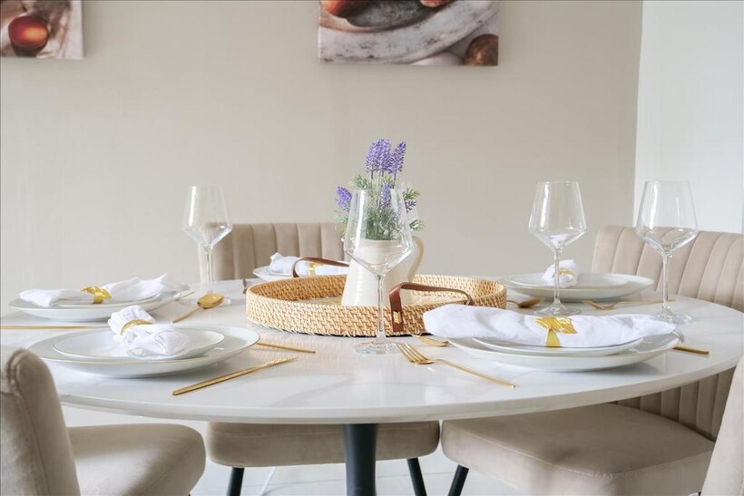 The inviting living areas provide the perfect setting for relaxation and socializing. Whether you're unwinding in the elegant lounge area or gathering around the dining table for a delicious meal, you'll feel right at home in this welcoming environment.