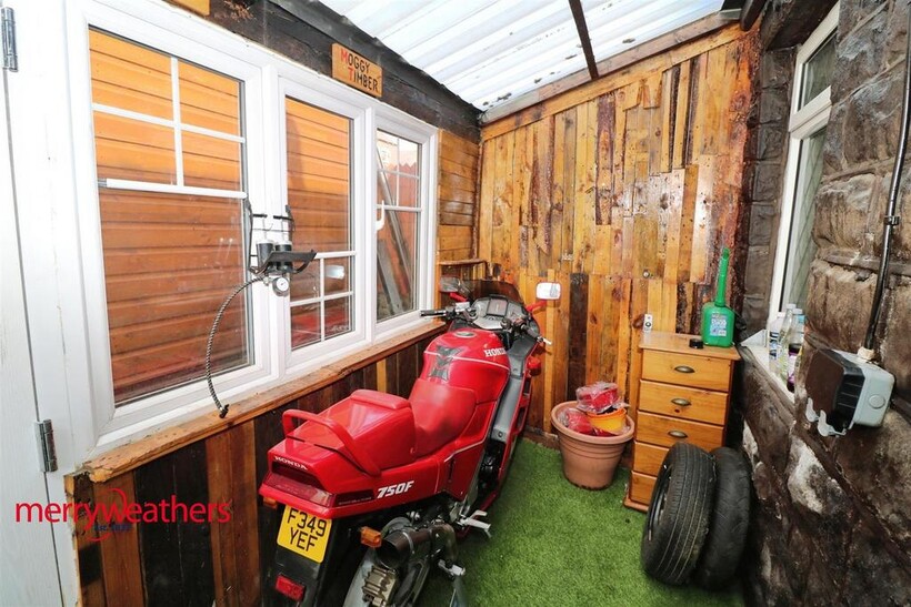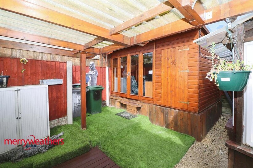 Outside - To the rear of the property is an enclosed yard area with a summer house. The summer house has an electric supply.