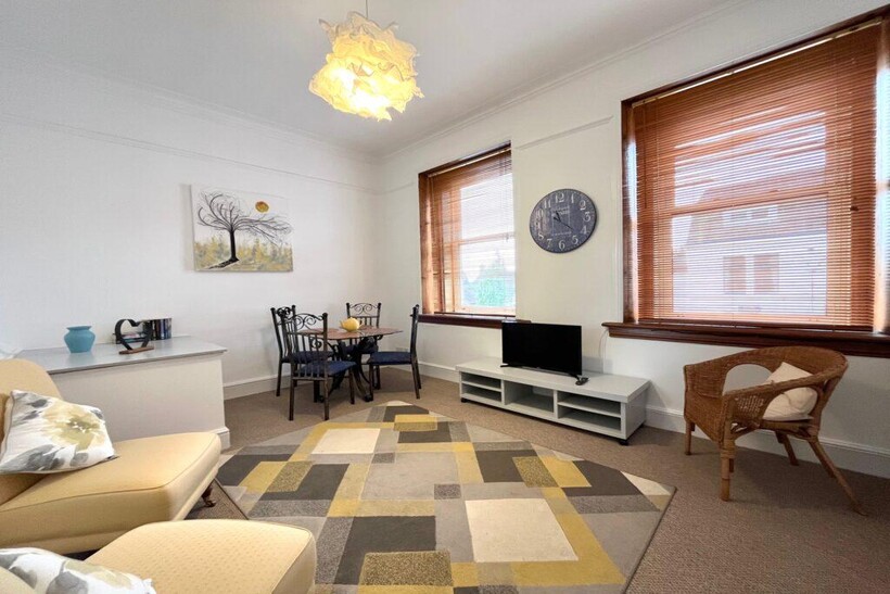This bright upper flat is situted in the centre of Callander amongst the hustle and bussle of the picturesque, thriving town, which is popular with locals and tourists alike.The flat is entered through its own main door and consists of entrance stairwell and hall, well proportioned lounge, which can easily accommodate a dining table if required, generous double bedroom, single bedroom, WC, fabulous new shower room and sleek newly fitted kitchen with modern wall and floor units. Excellent storage throughout including large walk-in wardrobe to the larger bedroom.