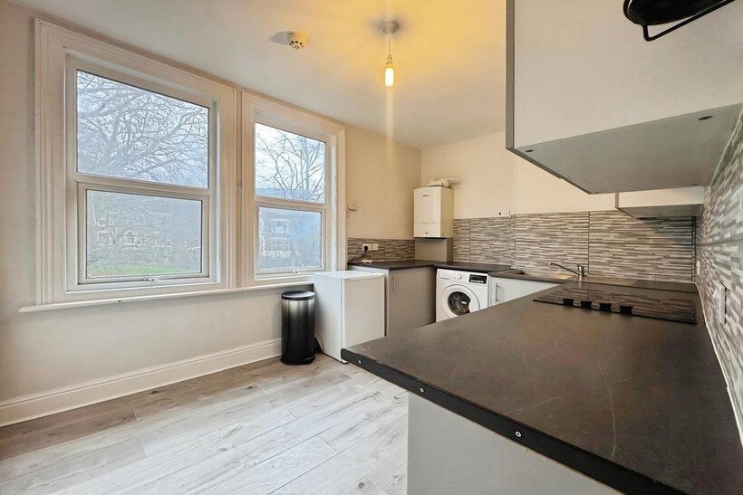 The property features a large and bright living area, a modern fitted kitchen with contemporary units and integrated appliances, a stylish bathroom, and a well-proportioned double bedroom, offering a comfortable and modern living space throughout.Externally, the property benefits from off-street parking to the rear and a secure communal entrance.