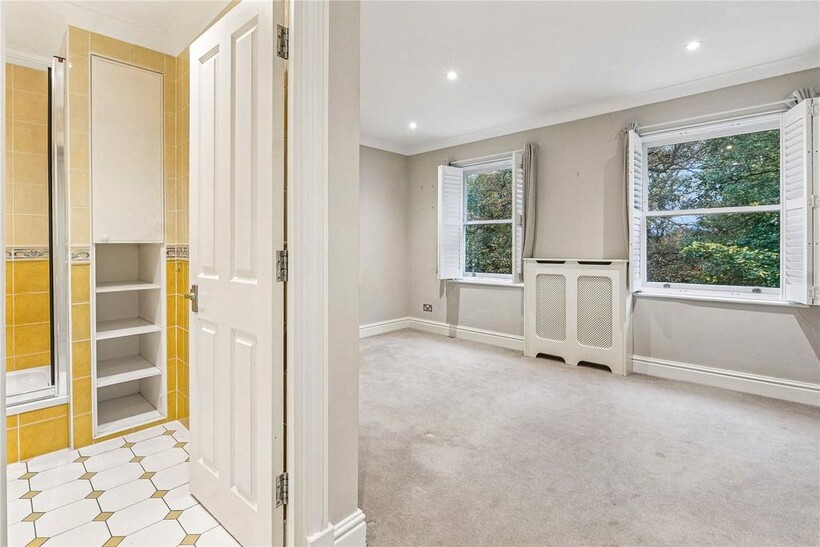 An additional bright and elegant reception room is located on the first floor, which has French doors onto a balcony overlooking the garden and the park beyond. Also on this floor is a spacious double bedroom with built in wardrobes and an en suite bathroom.