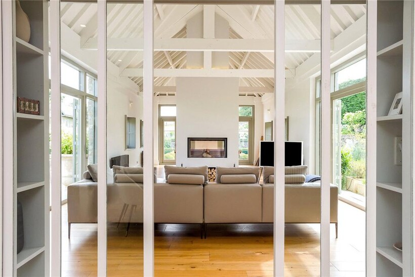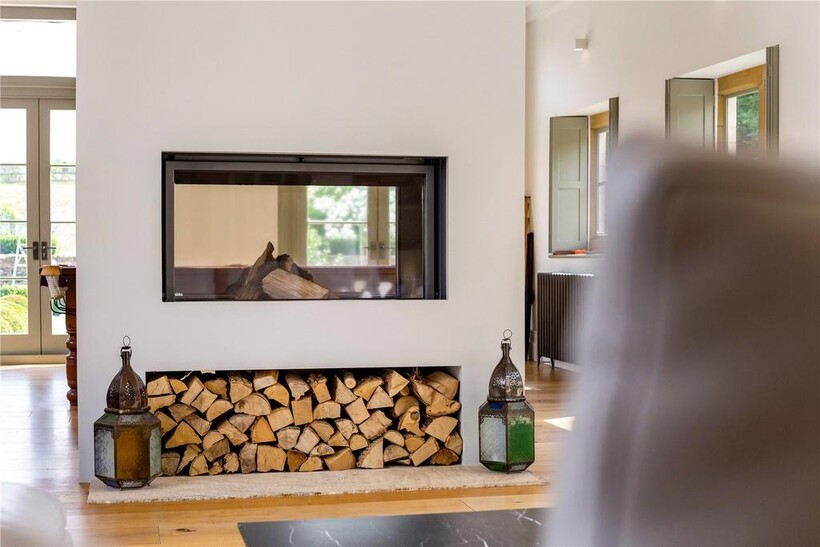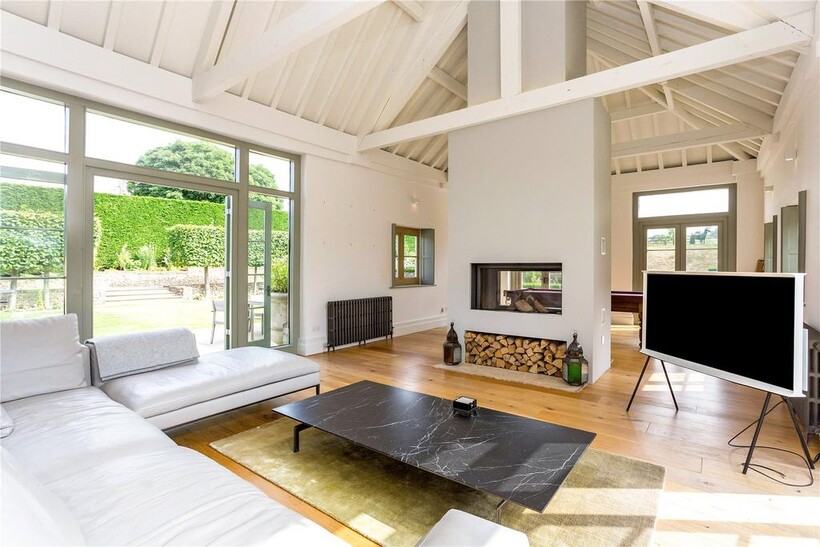 The house is beautifully presented and complemented by an attractive landscaped garden. Internally the house provides light and airy accommodation with the sitting room and study to the front of the house. Both of these rooms are fitted with oak floorboards, cast iron radiators and Clearview wood burning stoves. Forming the heart of the house is the kitchen which also includes eating and sitting areas, the latter being conservatory style and having direct access into the garden. The bespoke kitchen includes a large central island with 4 person eat up bar. There is extensive cupboard space and plenty of workspace with granite work tops and double stainless steel preparation sink. Off the kitchen is the good sized utility room which could be used as a secondary kitchen when formally entertaining in the main one. The principal reception room leads off the kitchen and enjoys garden aspects on three sides with three pairs of glazed, external doors. The room has a high vaulted ceiling and is partly split by a division which incorporates a two sided Stuv fireplace and chimney. The second reception room is a cosy space which overlooks the front of the house and leads to a private office space. The kitchen and entrance areas benefit from electric underfloor heating and cast iron radiators.