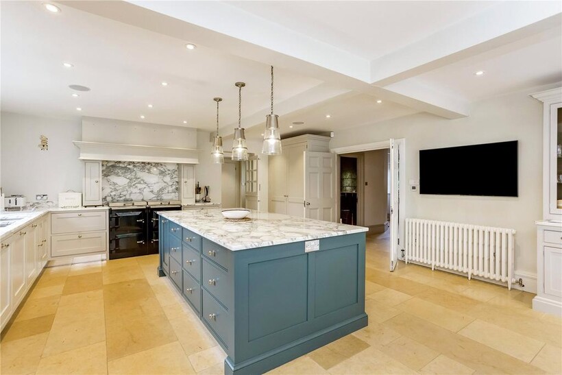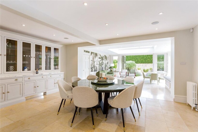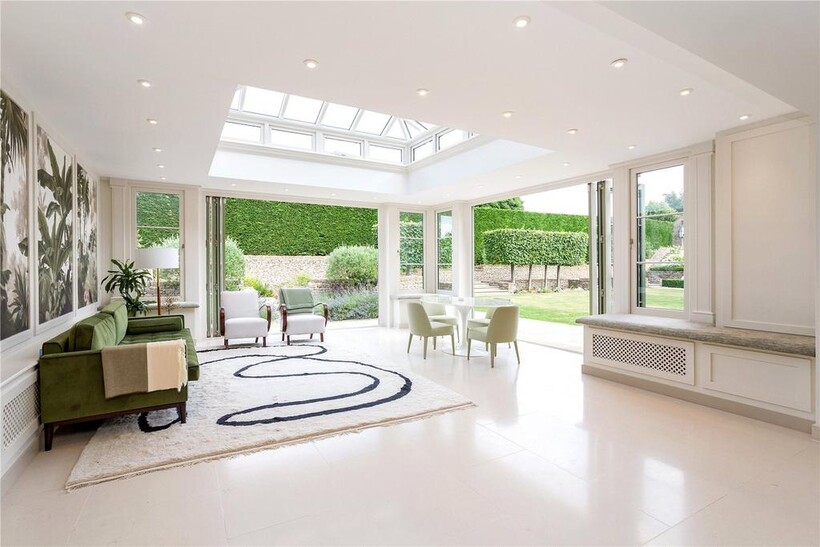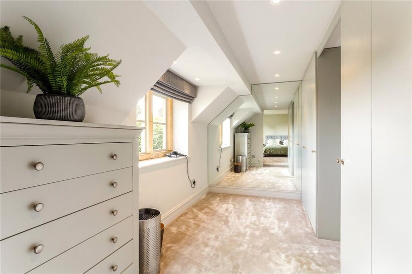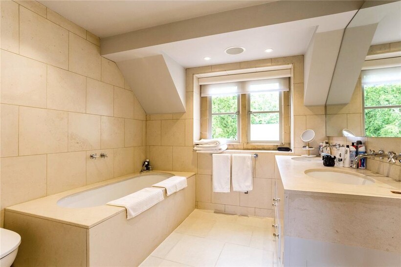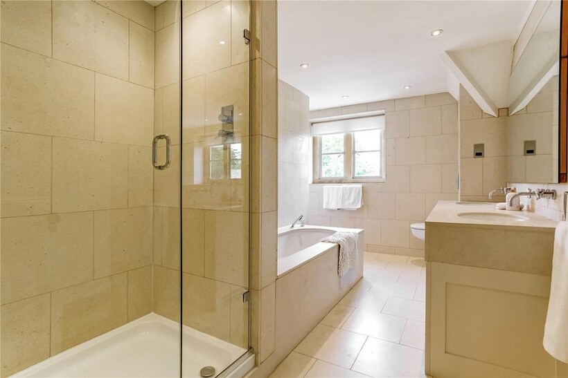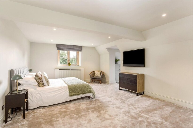 A staircase rises from the reception hall to the first floor where there are four double bedrooms. The principal suite incorporates a dressing room with fitted wardrobes and well-appointed bathroom. The other two bathrooms on this level are also of high quality, a large family bathroom and an ensuite to the guest bedroom. On the second floor there are two secondary bedrooms and a further bathroom.