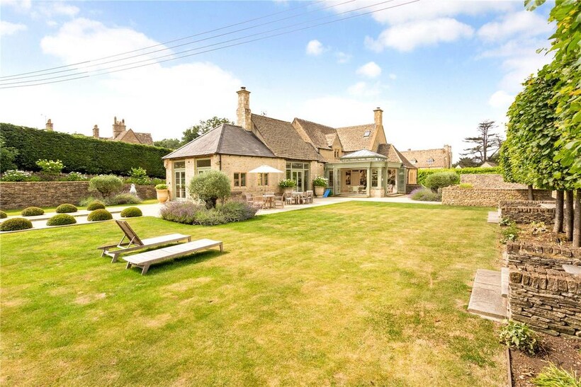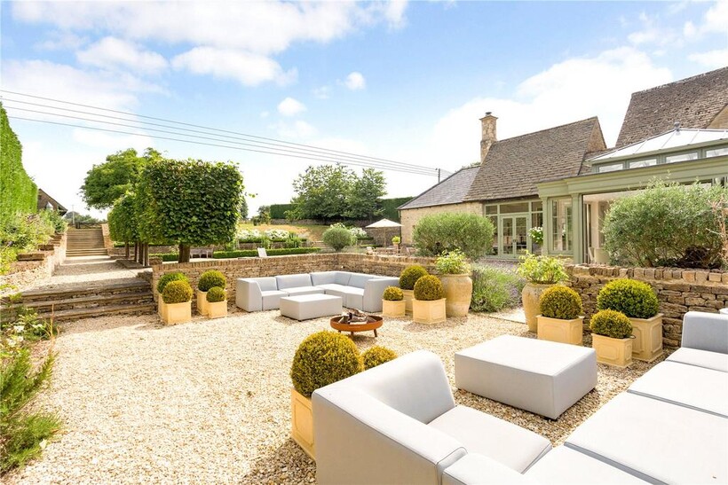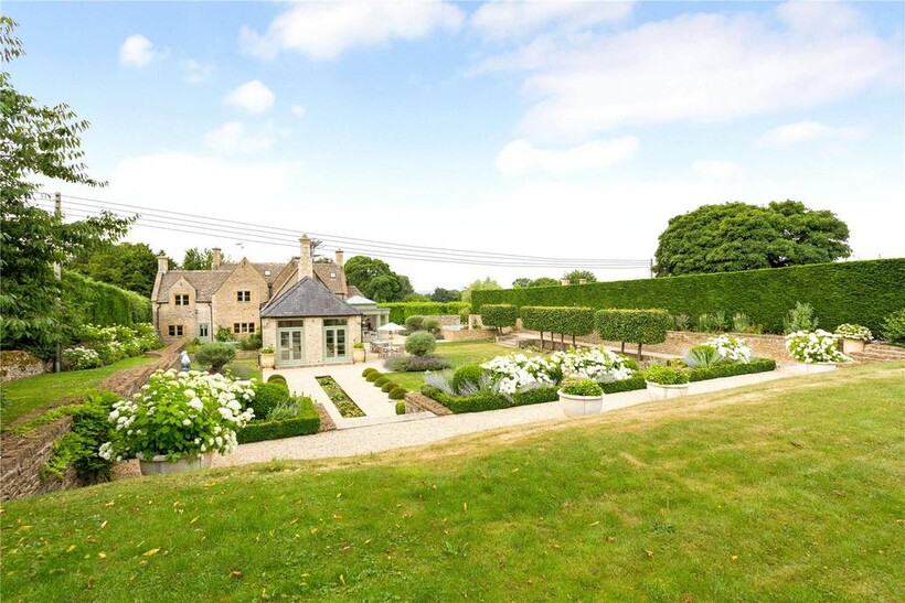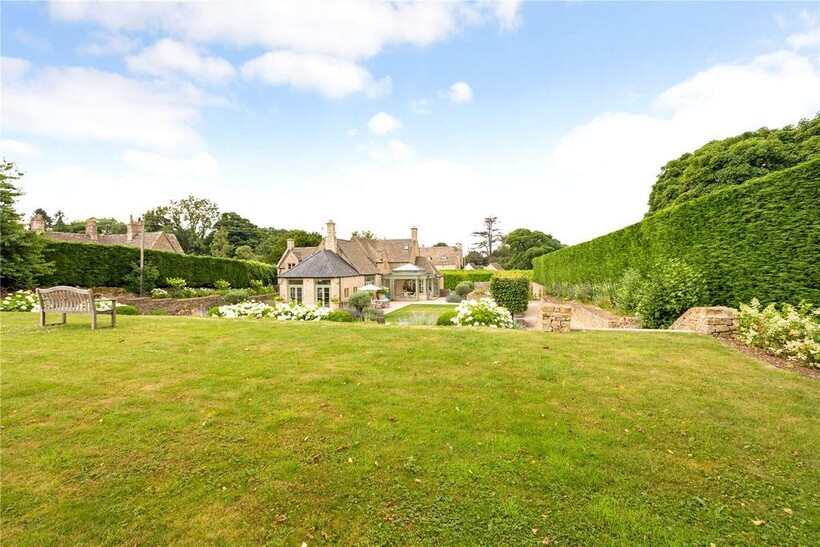 The property is approached through automated timber gates to a wide gravelled parking area fronting the house and the detached double garage. Cotswold stone walling divides the landscaped garden which includes a flagstone terrace adjacent to the house and box hedging encloses the flower and shrub borders. The lawned areas are divided by pathways with one side being bordered by a line of trees. From the lower, an impressive flight of steps leads up to a less formal area of garden with the stable block which incorporates one loose boxes along with outside lighting.