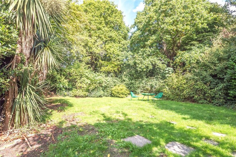 To the rear is an attractive and secluded garden with a paved terrace and one step up to an expansive area of lawn with a selection of trees and shrubs. There is a timber garden shed and a gate leading round to the front of the house, along with a garden storage area.