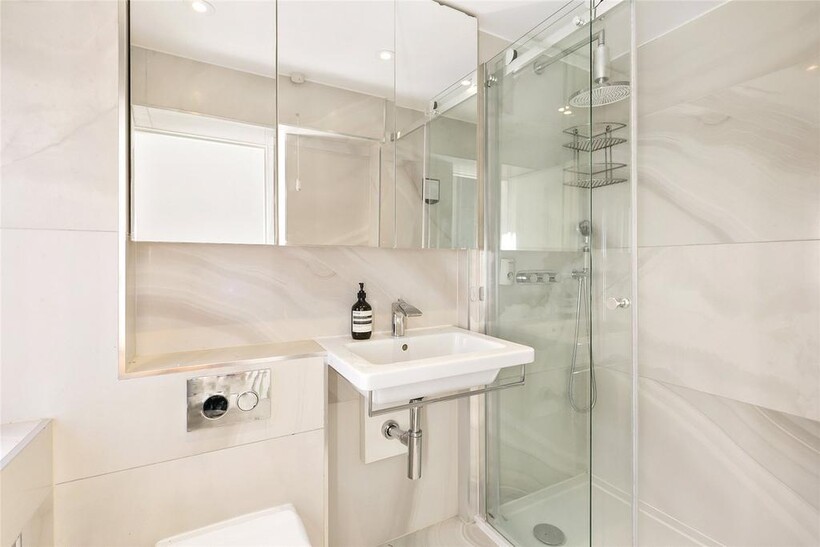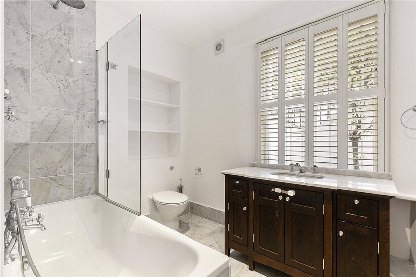 The stairs leading to the lower floor go past a rear-facing double bedroom and guest WC on the half-landing. The lower ground floor has a wonderful, bespoke kitchen which has been designed to professional standards and which overlooks the garden. It is open-plan to a comfortable seating area which makes this whole area the heart of the home. At this level there is also another bedroom and full bathroom as well as a utility room and storage space under the front steps. The master bedroom on the first floor has built-in wardrobes and en suite bathroom. There are two further bedrooms, each with built-in wardrobes, and a separate shower room/WC. The sizeable garden has been sympathetically landscaped and enjoys a generous paved al-fresco dining area as well as mature shrubs and plants.