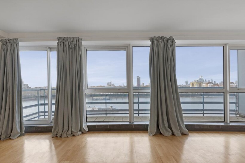 To Let – Penthouse Apartment with Direct River Thames ViewsSet across the sixth and seventh floors of the highly regarded Arnhem Wharf development, this exceptional neo-industrial penthouse spans approximately 1,358 sq ft (126.16 sq m) and enjoys spectacular uninterrupted views directly over the River Thames.