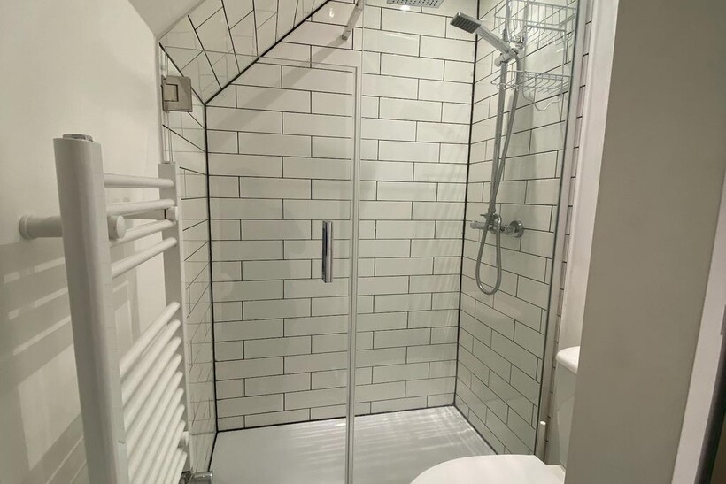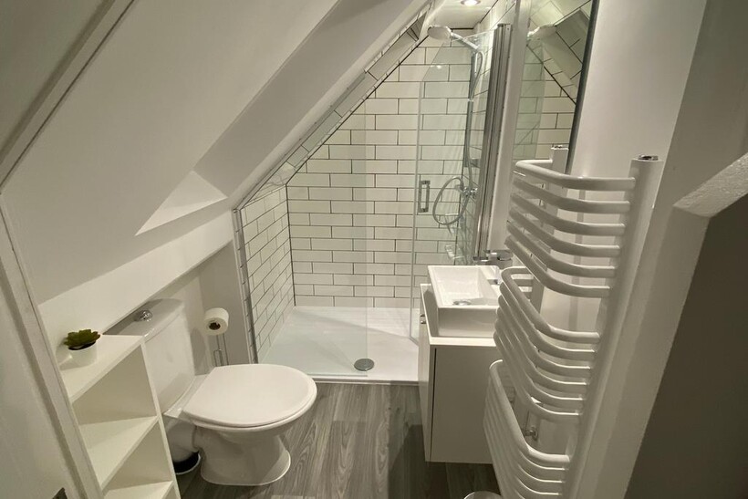 Two shared bathrooms, located on the first and attic floors, each with full suites including toilets, basins, shower enclosures, and/or bathtub.