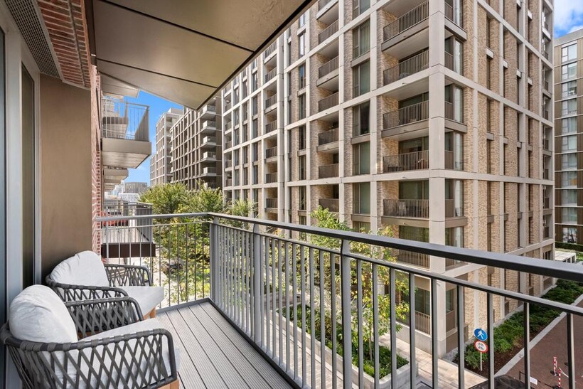 SHORT LET with all bills included. Immaculately presented two bedroom apartment with quality furniture, located on the second floor of this secure development with a private balcony. Moments from Battersea Power Station.The apartment benefits from a large open plan kitchen reception with floor to ceiling widows and doors providing direct access onto the West facing private balcony. There are two double bedrooms, both with storage and use of a large family bathroom. There is excellent storage space off the entrance hallway providing ample storage space. The apartment further benefits hard floor throughout and boutique furniture.