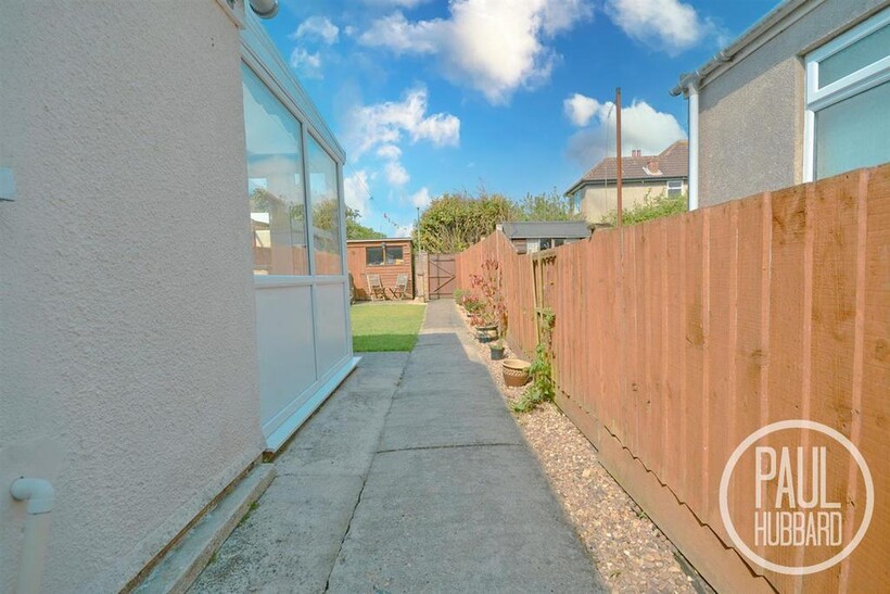 To the rear there is a beautiful west facing lawn garden with gated access to the rear, timber shed and door to conservatory