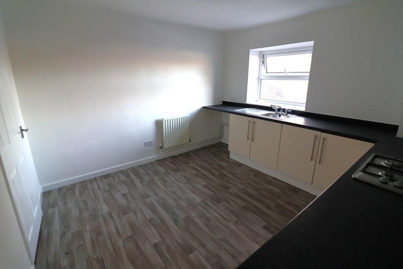KITCHEN/DINER 10' 7" x 10' 9" (3.23m x 3.28m) The kitchen features brand new vinyl flooring and a uPVC window to the rear elevation, flooding the space with natural light. It is fitted with a sleek chrome sink, black work surfaces, an electric oven, a gas hob, and an extractor fan. High and low-level units provide plenty of storage, while a wall-mounted radiator keeps the room warm. The kitchen also offers plumbing for a washing machine, space for a freestanding fridge/freezer, and enough room for a dining table, making it a practical and inviting space for everyday living.