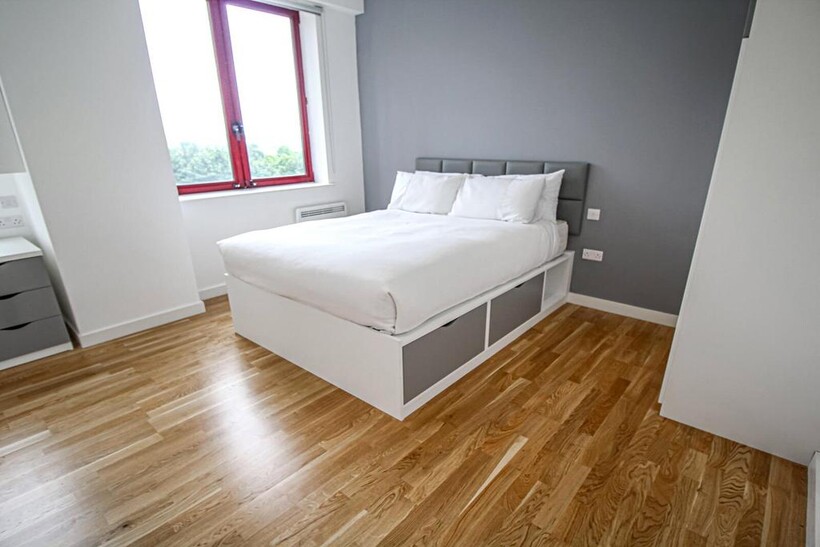 Your open-plan kitchen doubles as a dining and living area, equipped with essential appliances, a large comfy sofa, coffee table, dining table, and smart TV – the ultimate social hub for connecting with friends and family. And to top it off, say farewell to communal laundry services as you'll have your very own washer-dryer for added convenience.