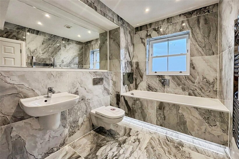 Both bedrooms are well-sized, with the principal bedroom offering excellent storage potential. The sleek family bathroom includes a modern suite, quality fixtures, and elegant tiling.