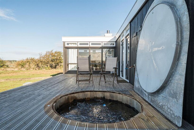A wide decked terrace wraps around the house with direct access via sliding doors from most rooms. The south facing terrace provides the perfect space for eating, relaxing and entertaining while the more secluded west terrace features a sunken hot tub. In short, the interior accommodation is designed to blend seamlessly with the stunning countryside and coastal surroundings that the house enjoys.