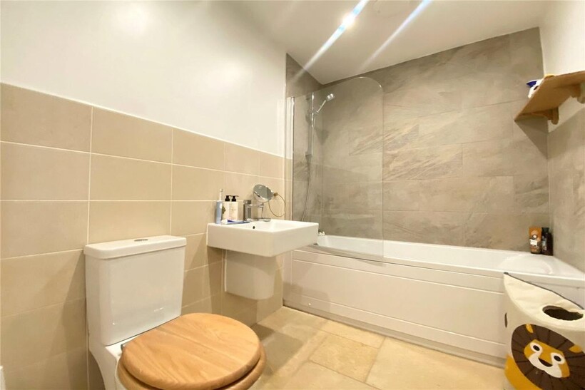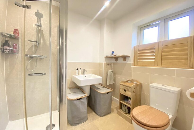 On the first floor, the principal bedroom benefits from an en-suite shower room with stone flooring, and there are two further bedrooms, one double and one single, along with a modern family bathroom with matching stone flooring and an airing cupboard on the landing. The property is due to be fully redecorated throughout prior to the tenancy starting.