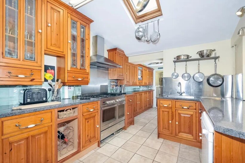 On the ground floor, the property boasts three reception rooms, offering flexible space for living, dining, office use, or family activities.