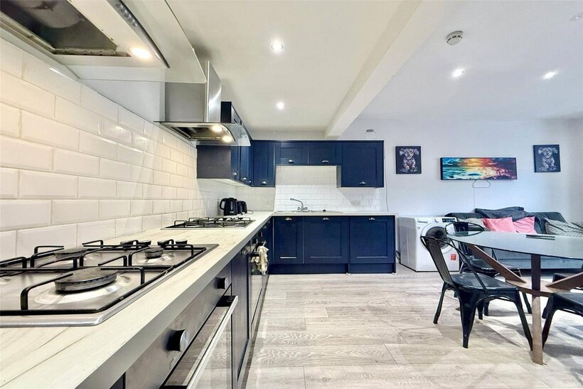 At the heart of the home is a high-spec communal kitchen, complete with modern appliances, ample storage, and worktop space to suit a busy professional lifestyle. Whether you're preparing a meal or enjoying a coffee with housemates, the kitchen is both practical and welcoming. The adjoining living area offers a relaxed, social space, complete with comfortable seating-perfect for winding down or catching up after work.