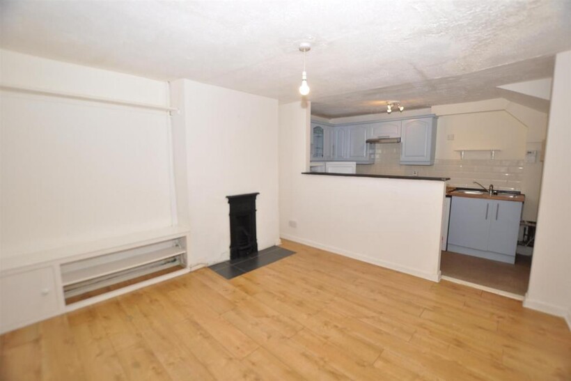 Ground Floor - 3.82m x 5.28m (extending into the bay to 5.84m) ( - The ground floor features an open plan kitchen, dining and lounge area. Wood effect laminate flooring throughout and a panelled radiator. Window to the fore. There is also low-level wooden cupboard space and a feature fireplace.