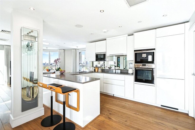 Located in a sleek and modern building, this property combines contemporary design with comfortable living. The open-plan layout is flooded with natural light, featuring a spacious living area and a fully-equipped, state-of-the-art kitchen perfect for entertaining or unwinding in style. Each of the two double bedrooms is beautifully finished, offering ample storage and tranquil escapes. Further two bathrooms complete the top floor, one being en-suite as well as a dressing room.