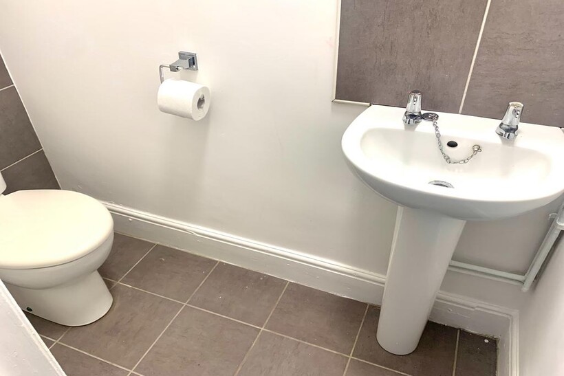 CLOAKROOM - White suite with toilet and sink.