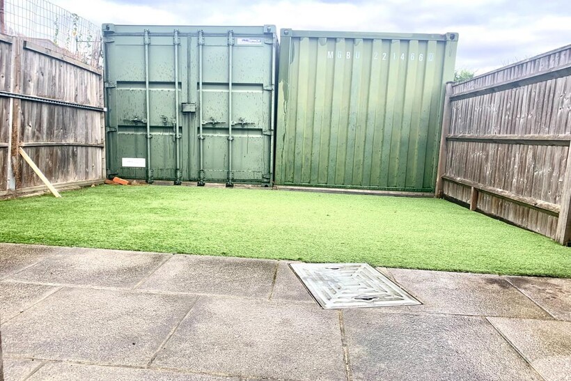 GARDEN - Patio area with artifical grass. Storage container for tenants use for storage.