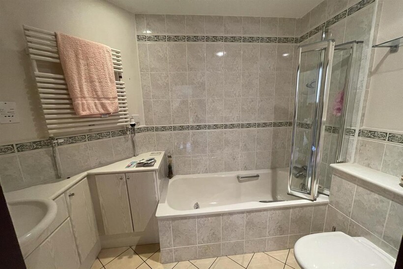 The accommodation offers entrance hall with storage, large living/dining room with access to its balcony, kitchen with appliances, utility with washing machine, master bedroom with built in wardrobes, ensuite bathroom with shower over bath, two further good size bedrooms and a separate shower room.