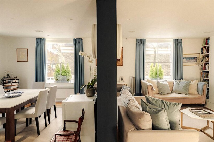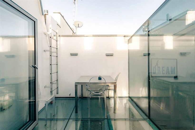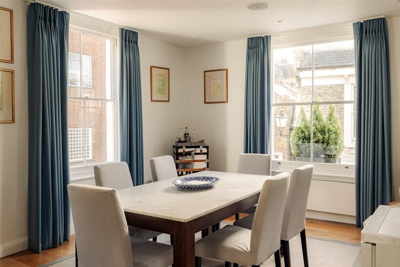 The second floor opens onto a private terrace offering space for outdoor dining while enjoying the peaceful mews.