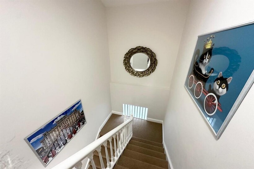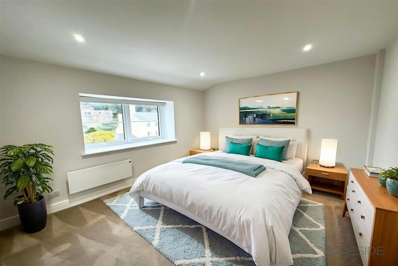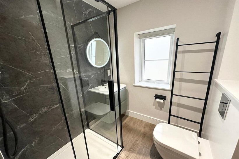 There are two double bedrooms, both complete with plush carpeting, ample space and large windows. The modern bathroom boasts a spa-like atmosphere with its contemporary fixtures, elegant tiling and a spacious shower. Separately, there is a toilet and utility room.