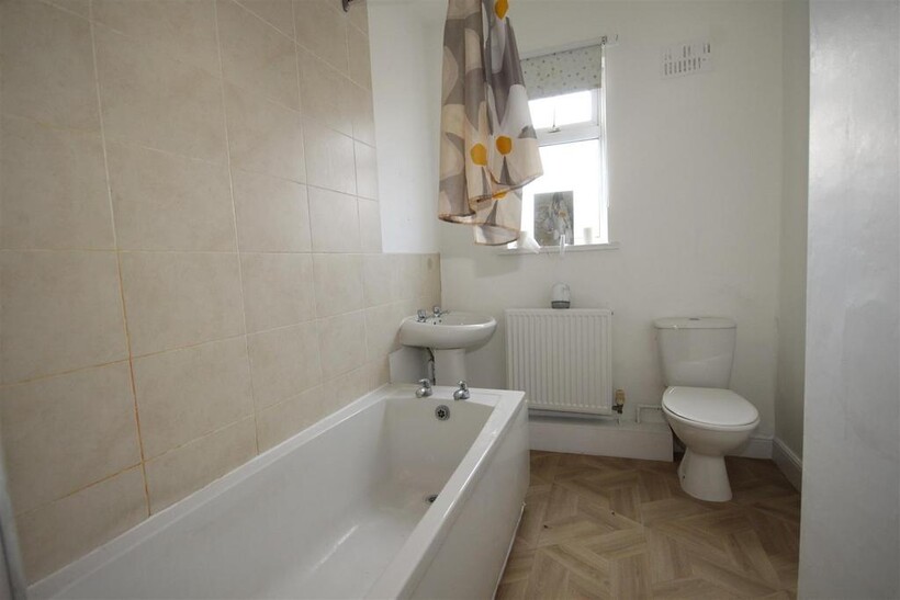 Family Bathroom - 6' 7'' x 10' 4'' (2m x 3.14m) - With low flush wc, wash hand basin, panelled bath with electric shower over, tiled surround, airing cupboard housing the hot water cylinder, uPVC frosted window and wall mounted radiator.
