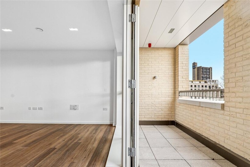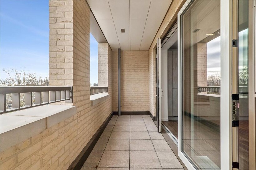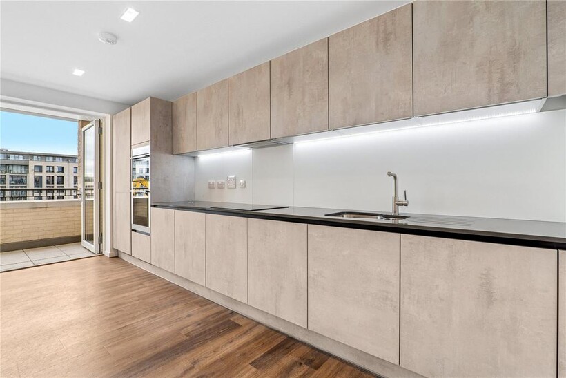 This contemporary two-bedroom apartment is situated on the third floor of a new development at Portobello Square.
