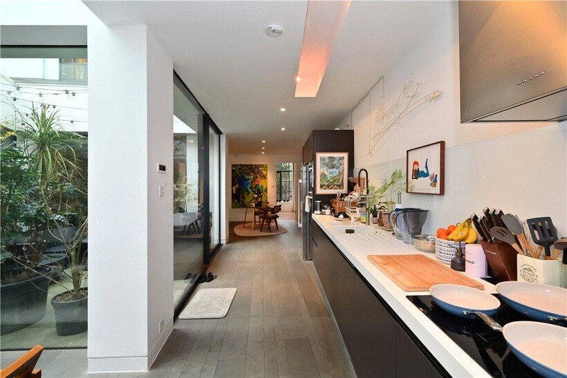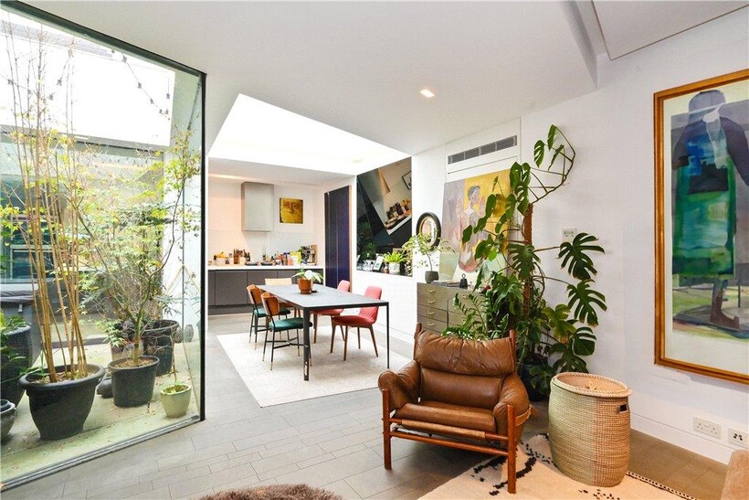• Expansive double-aspect reception room with striking windows and contemporary kitchen